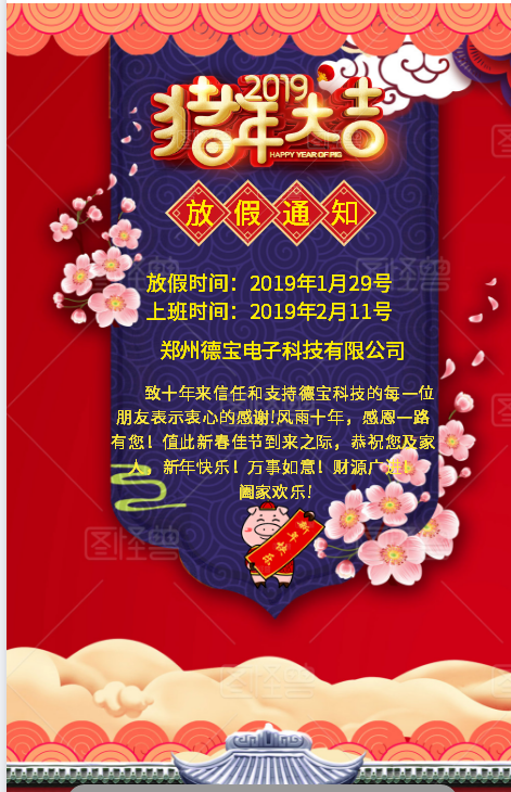 鄭州德寶電子科技有限公司2019年春節(jié)放假通知